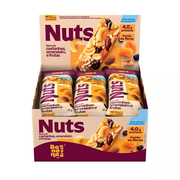 Amendoim, castanha-de-caju, suco de maçã concentrado, uva-passa, amêndoa, fibra polidextrose, isomalto–oligossacarídeo de tapioca (fibra de tapioca), castanha-do-Brasil, damasco desidratado, pepita de girassol, fibra goma acácia, gordura de palma e antioxidante lecitina de girassol